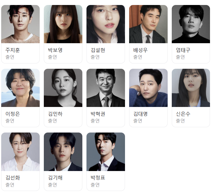 그 중에서도 저는 개인적으로 주지훈, 박보영, 엄태구, 이정은 님의 캐릭터들과 연기가 기대가 됩니다. 여러분들은 어떤 배우들의 연기와 캐릭터가 기대되나요?