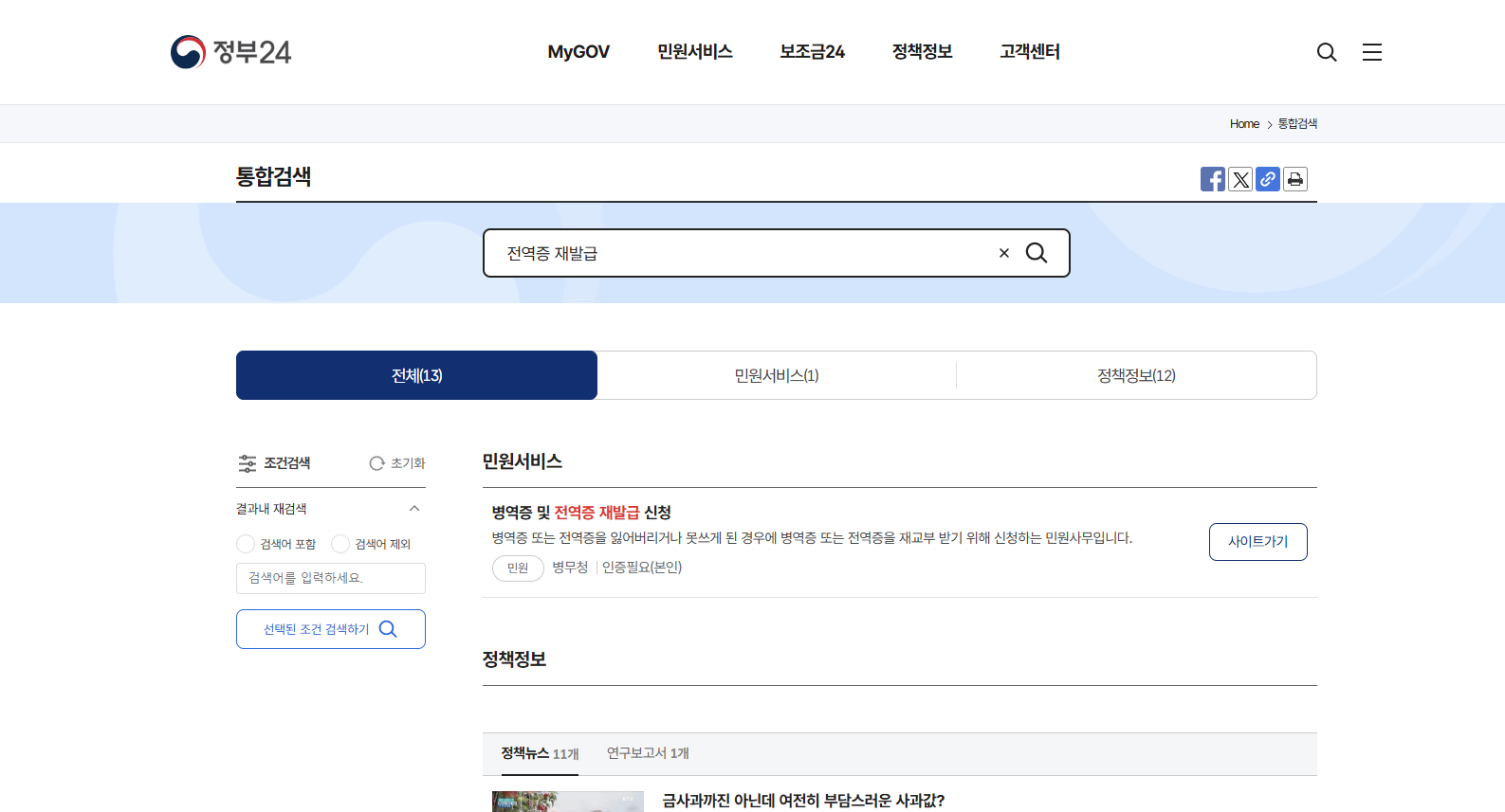 2️⃣ 검색창에 "병적증명서" 입력 후 검색