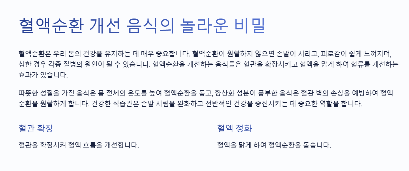 - 금연과 절주: 흡연과 과도한 음주는 혈관을 수축시켜 혈액순환을 방해하므로 피하는 것이 좋습니다.