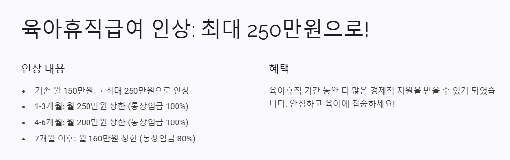 - 육아휴직 초기 3개월 급여 인상 가능성